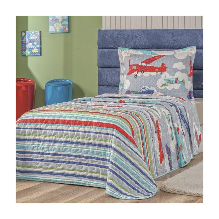 Kit Cobre Leito Infantil Solteiro 02 Peças Bouti - Avião