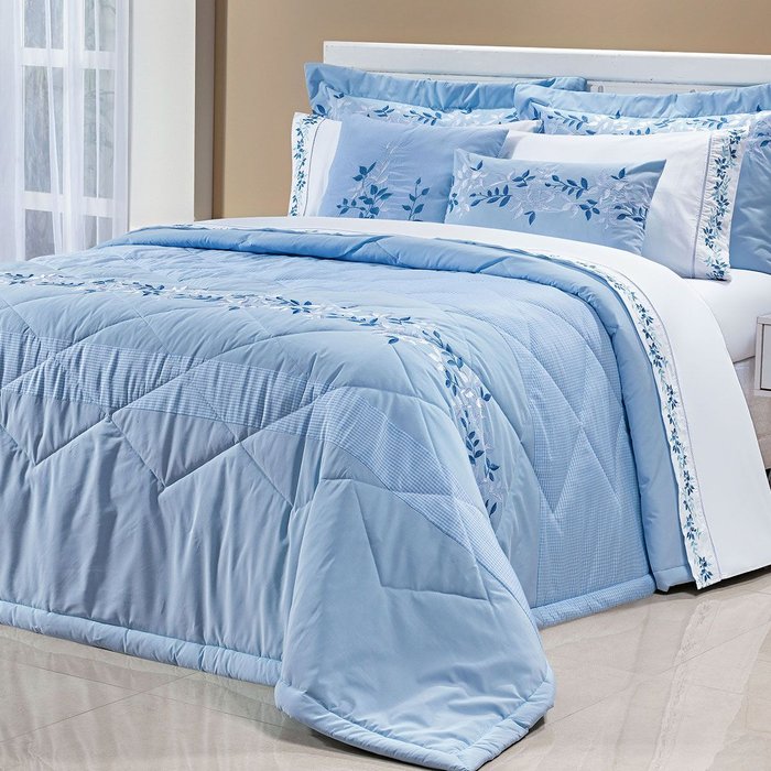 Kit Cobre Leito King Size Azul 100% Algodão 200 Fios 7 Peças 2,80m X 2,70m