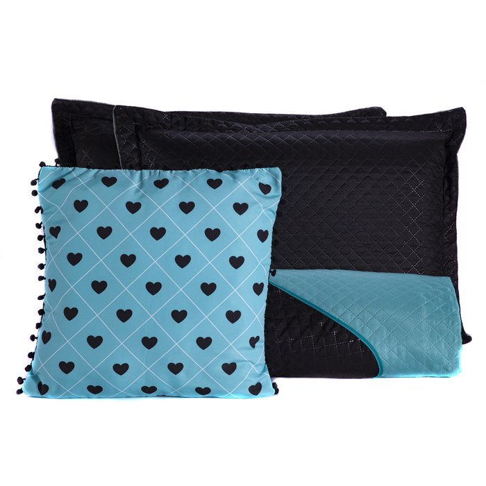 Confeccionado em tecido Microfibra 100% Políester, a nova Coleção Love Tiffany vem trazendo um toque macio, com portas em acabamento debrum, o cobre leito com enchimento em manta dupla face, permitindo o uso dos dois lados (Tiffany e Preto) com lindos detalhes nos porta-travesseiros matelados e também na capinha de almofada estampada com pompom, tudo para combinar com a sua decoração! Produzido num rigoroso controle de qualidade, dando um toque de requinte para o ambiente. Confira!