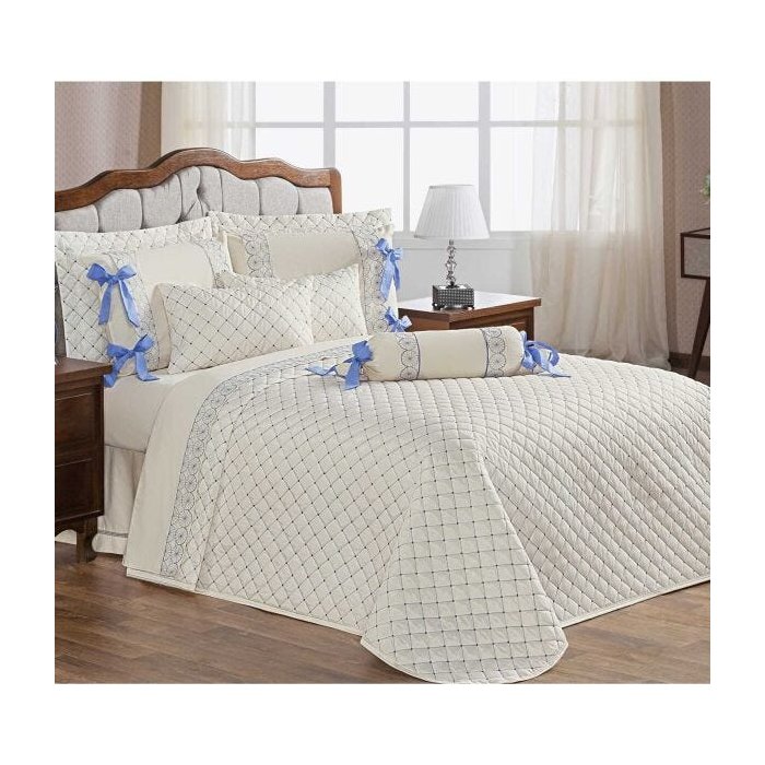 Kit Cobre Leito Napoli Casal Super King Bordado 03 Peças - Azul