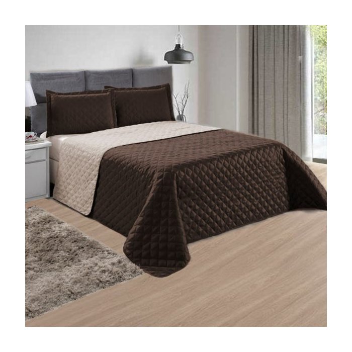 Kit Cobre Leito Queen Dupla Face Nobre 3 Peças Marrom e Bege Casa Dona