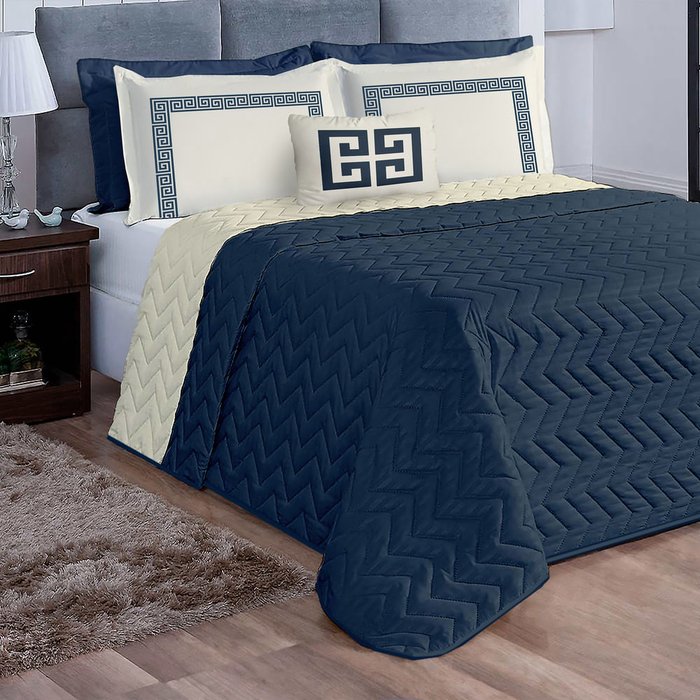 Kit Cobre Leito Queen Grecco Azul Marinho Casaborda 5 peças Azul Marinho