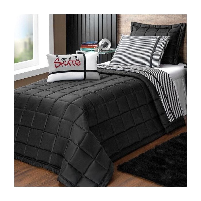 Kit Cobre Leito Skate Preto Solteiro 04 Peças