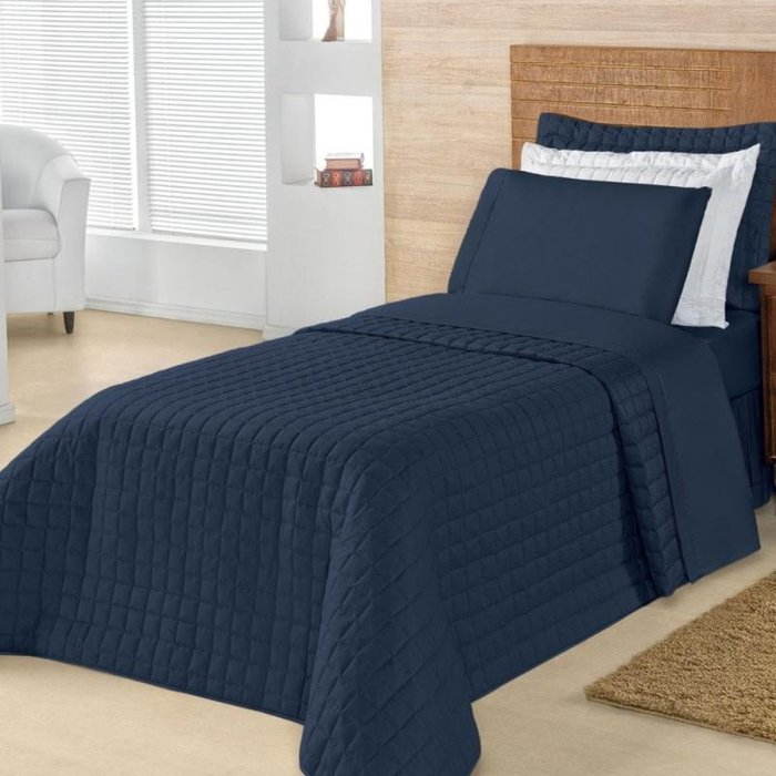 | Nome do desenho | Kit cobre leito solteiro top line liso 2 peças 180 fios azul |