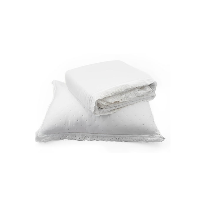 Kit Colcha Amelie Branco 3 Peças C/ Toque de Algodão Bordado Inglês