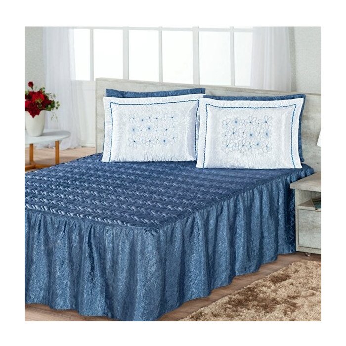 Kit Colcha Casal Liberty 3 Peças Casaborda Azul