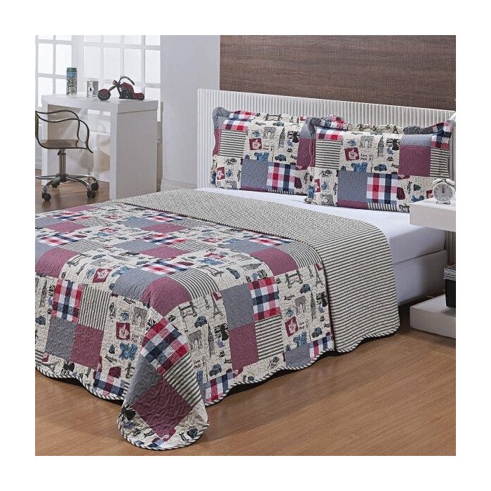Kit Colcha Casal Londres Bouti Juvenil 3 Peças Niazitex