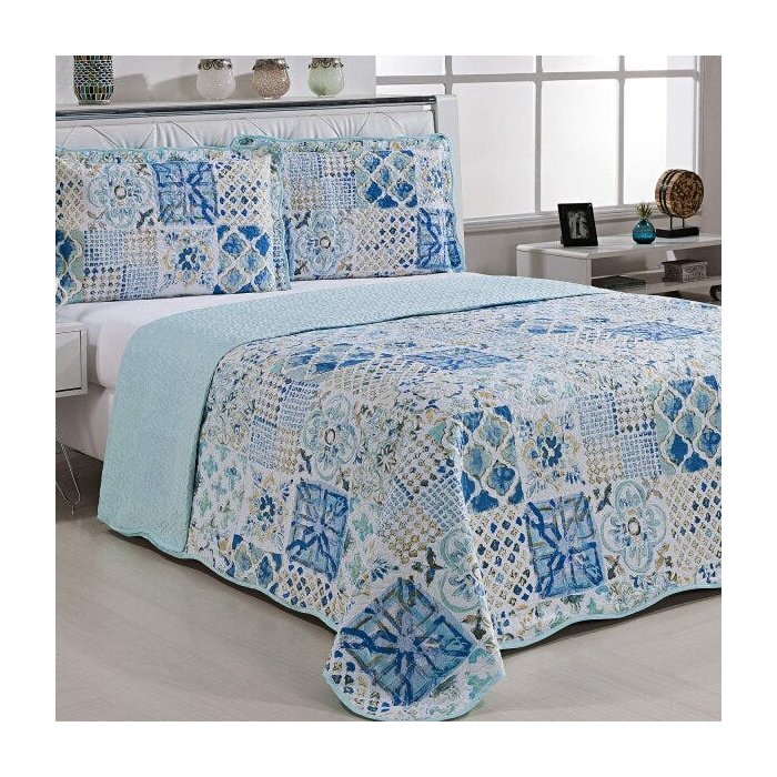 Kit Colcha Casal Ultrassônica 3 Peças Parma Niazitex Azul Claro