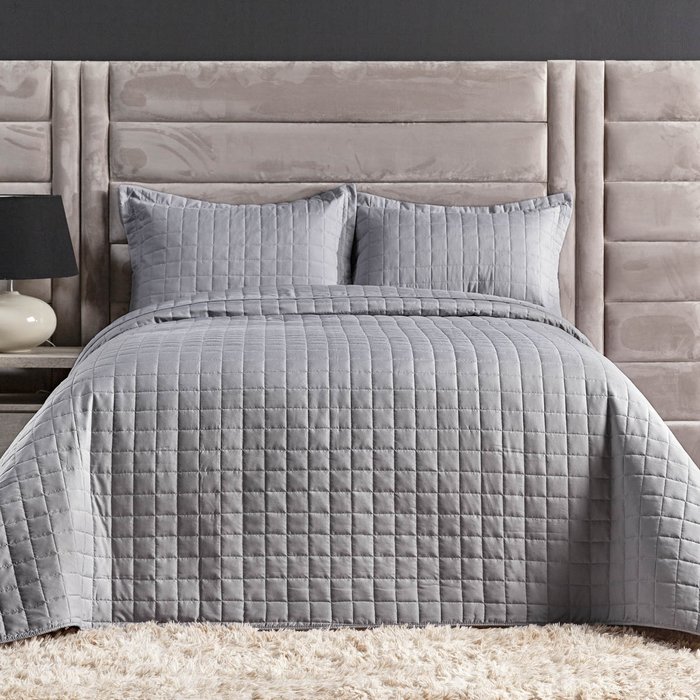 Kit Colcha Cobre Leito Casal Padrão 3 Peças Cama 300 Fios Porta Travesseiro Várias Cores Cinza Cinza