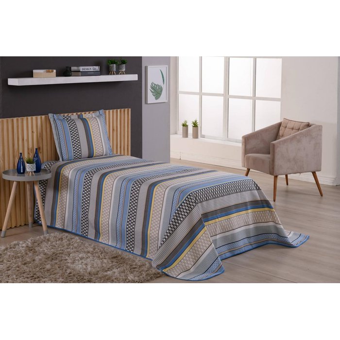 Kit Colcha Cobre Leito Viena Solteiro 2 Peças Listrado Listrado