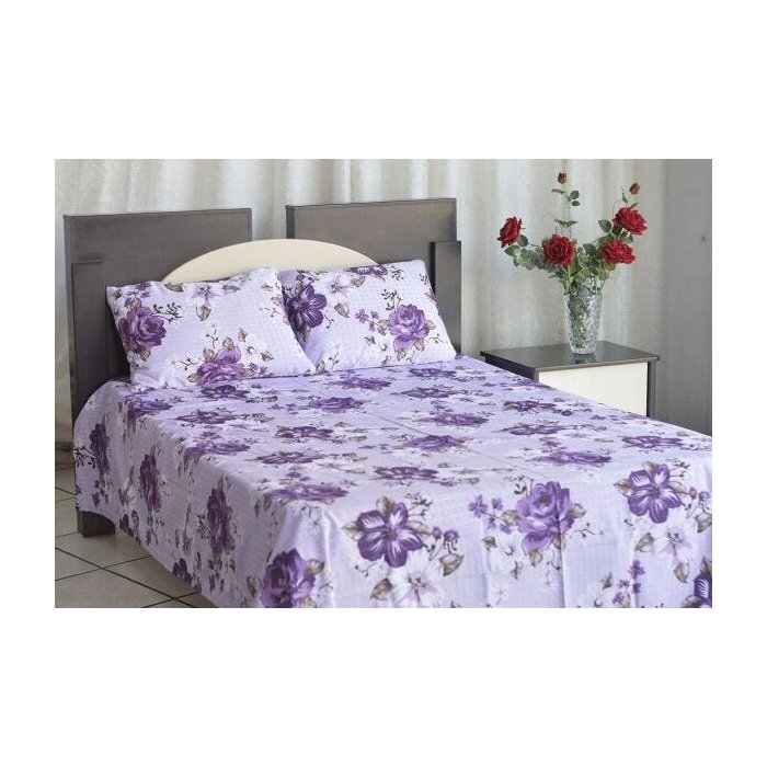 Kit colcha de casal texturatto estampada Florida Roxa - OMA Enxovais