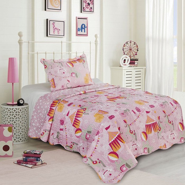 Kit Colcha Evolution Patchwork Solteiro 2 Peças Microfibra Circo Estampado