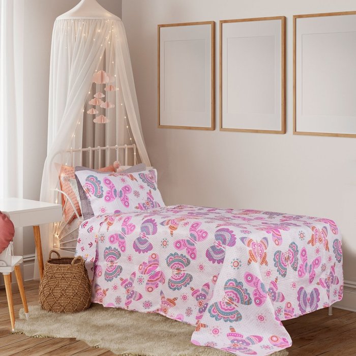 KIT COLCHA INFANTIL COBRELEITO DUPLA FACE 2 PEÇAS HABITAT BORBOLETAS