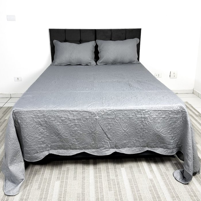 Kit Colcha King 3 Peças Siena:cinza Claro Cinza Claro