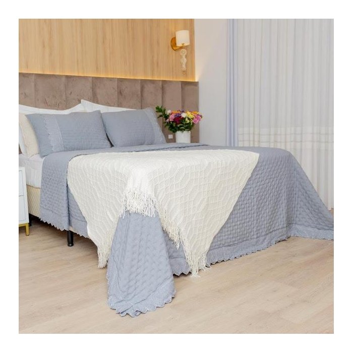 1 Colcha 260x280 com detalhes em bordado inglês e enchimento em toque de pluma de ganso