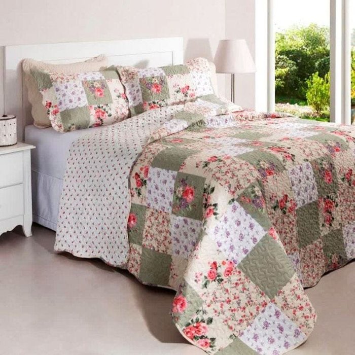 Kit Colcha Patchwork Verbena Queen Rozac A Colcha Patchwork Verbena Queen Rozac é dupla face e vem acompanhada de 2 porta travesseiros. Possui uma estampa floral que deixará o quarto ainda mais charmoso e alegre. Produto de alta qualidade. Composição: Tecido externo e interno 100% poliéster Microfibra de poliéster Estampa estilo Patchwork: promete deixar o seu quarto muito mais lindo. Tecnologia Ultrassônic: não possui costura com linhas. É feito através de uma tecnologia onde o matelassado é feito através do calor. Recomendações de uso: - Lavar separadamente as cores escuras e lavar antes da utilização - Fundamental seguir rigidamente as instruções de lavagem indicadas na etiqueta, assim seu produto terá uma vida útil maior - Lave de preferência em água fria - Não utilize alvejantes ou qualquer outro produto à base de cloro tem tecidos coloridos - Não deixe o jogo de cama de molho por tempo prolongado - O sabão em pó e amaciantes devem ser diluídos e utilizados em pequenas proporções - Lavar em temperatura máxima de 40ºC - Pode secar em tambor - Pode passar ferro - Não lavar a seco Conteúdo do kit: 1 Colcha dupla face - 2,40 m x 2,60 m 2 Porta travesseiros - 50 cm x 70 cm *Imagem ilustrativa. A tonalidade pode variar de acordo com as configurações do seu monitor e/ou lote do produto.