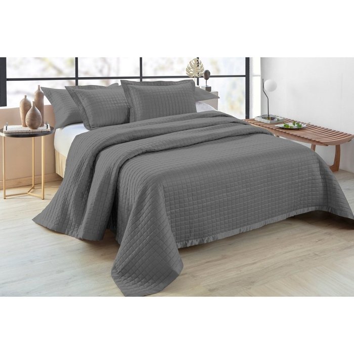 Kit Colcha Queen 3 Peças Melbourne:cinza Escuro Cinza Escuro