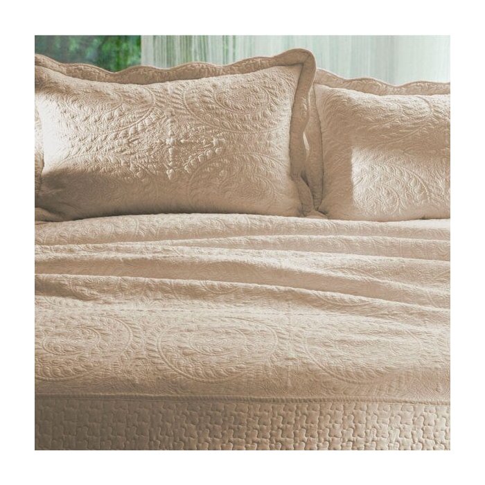 Kit Colcha Queen Algodão Bordado 3 Peças Bouti Versailles Jolitex Bege