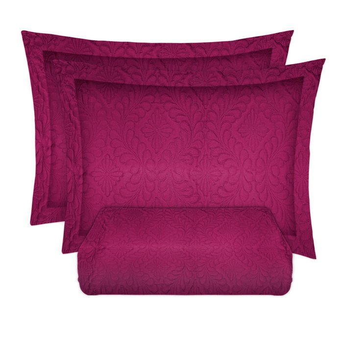 Kit Colcha Queen Le Casa Lisa 100% Poliéster Rosa Magenta 3 Peças