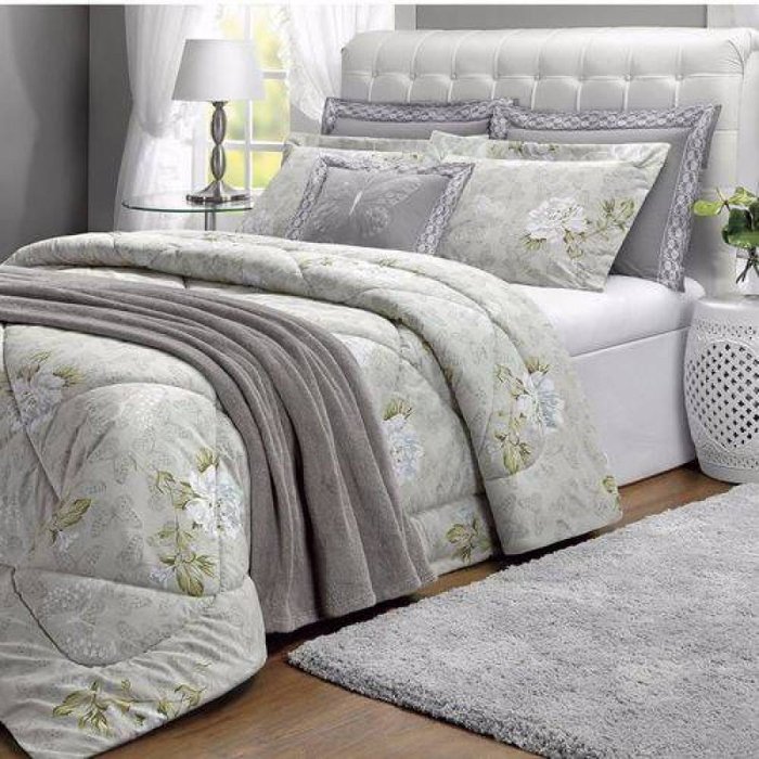 Kit Colcha Queen Papillons 7 Peças Algodão 200 Fios Casaborda Cinza