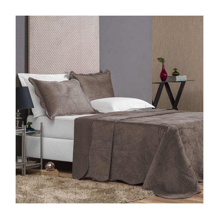 Kit Colcha Soft Line Casal Veludo Microfibra Efeito 3D Pinsonic 3 Peças - Marrom Escuro