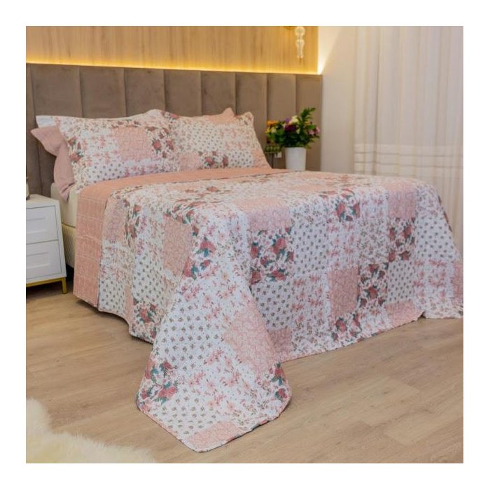 Kit Colcha Solteiro Bouti Cobre Leito Estampado 2 Peças Cor:Patchwork