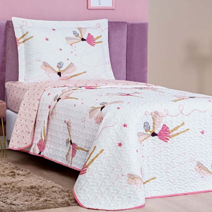 Kit Colcha Solteiro Infantil Fantasy Dupla Face Microfibra 2 Peças - Bailarina