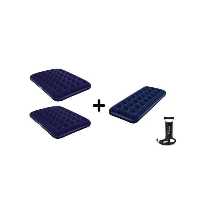 Kit Colchão Inflável - 2 Casal + 1 Solteiro + 1 Bomba de Ar azul