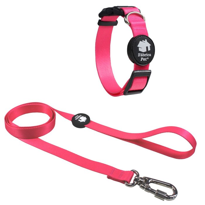 Kit Coleira para Pet M Neon Rosa - Fábrica Pet