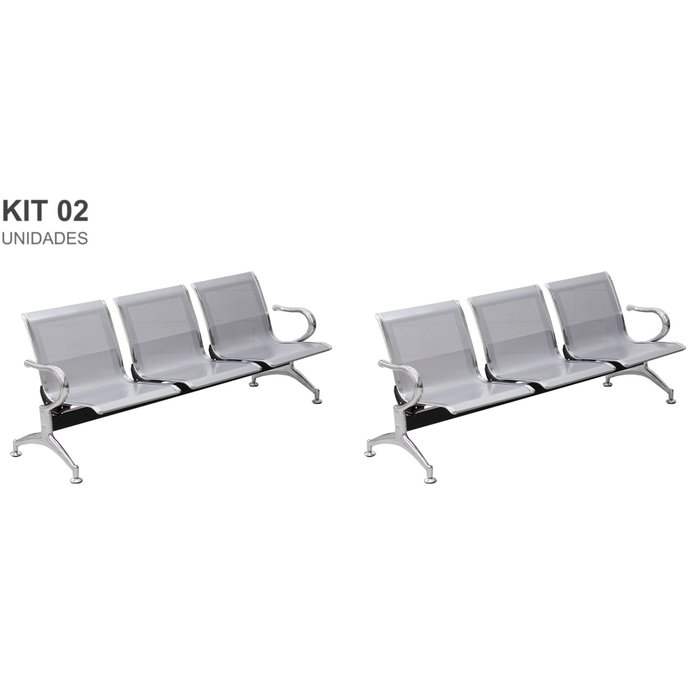 Kit com 02 Cadeiras Longarina Aeroporto Cromada 3 Lugares