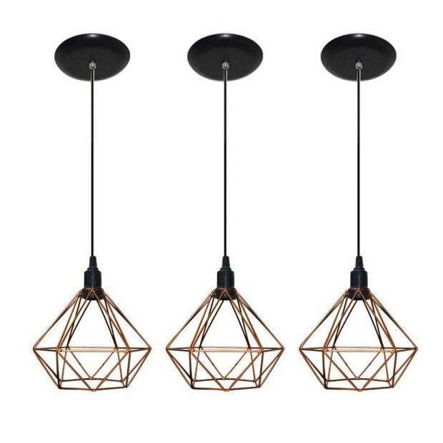 <p><strong>Kit com 03 Luminarias Pendente Aramado Modelo Diamante - Cobre</strong></p>