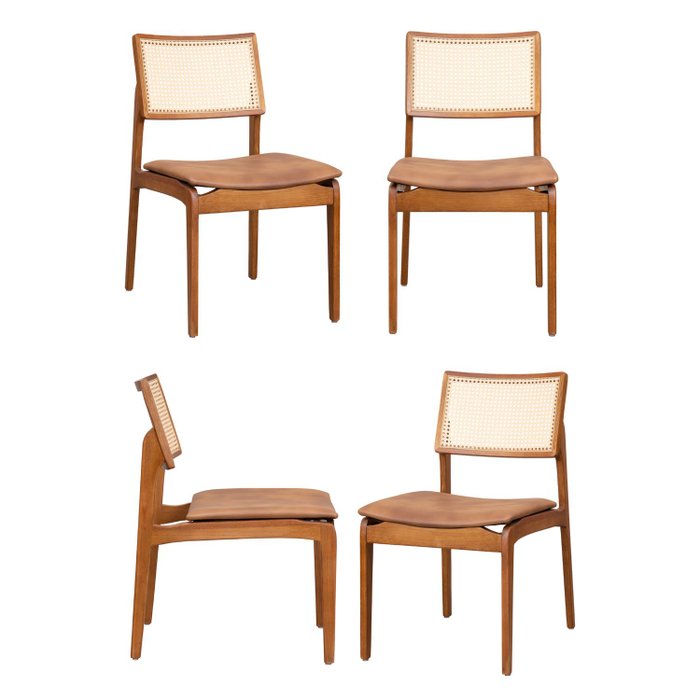 Kit com 04 Cadeiras Madeira Maciça Estela CabeCasa MadeiraOriginals Naturalíssimo/Caramelo