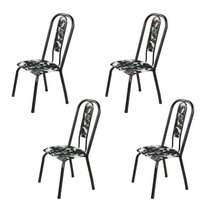 Kit com 04 Cadeiras para Sala de Jantar Fortaleza Floral Preto / Preto