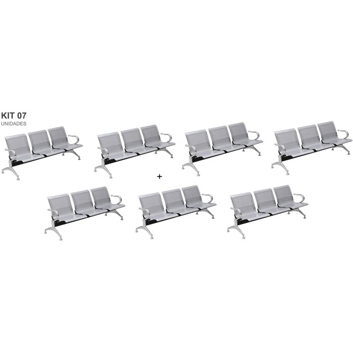 Kit com 07 Cadeiras Longarina Aeroporto Cromada 3 Lugares