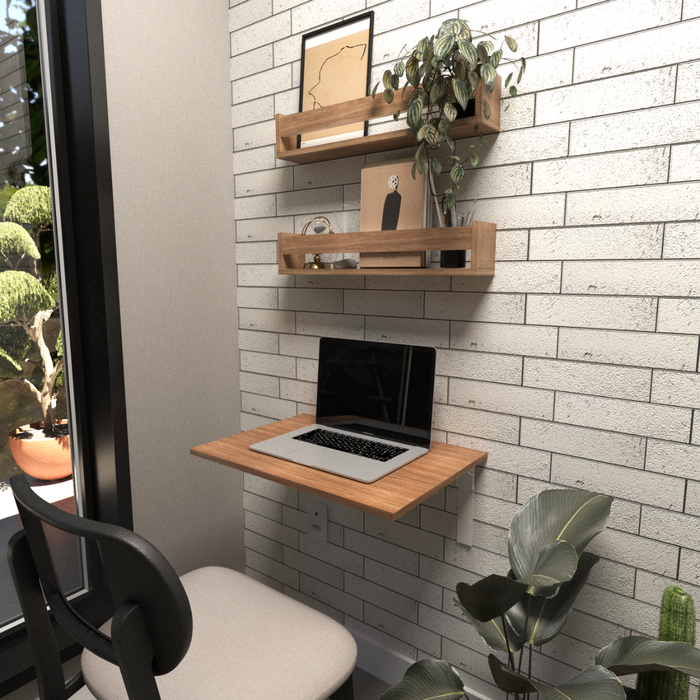 Kit com 1 Escrivaninha Suspensa 60cm e 2 Prateleiras Carvalho Mel