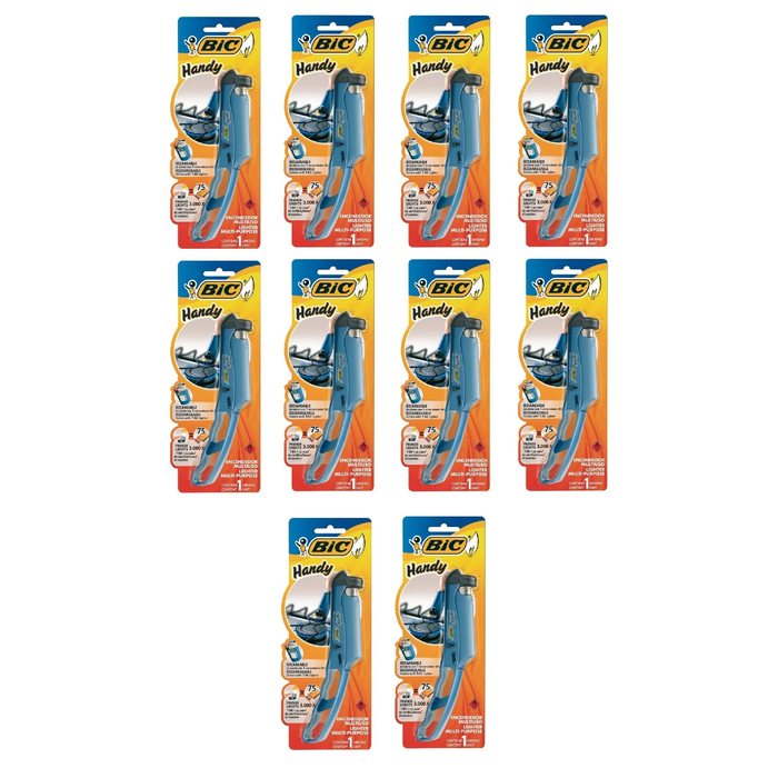 Kit com 10 Acendedor Isqueiro Fogão Forno Fogareiro Bic Handy Multiuso Recarregável