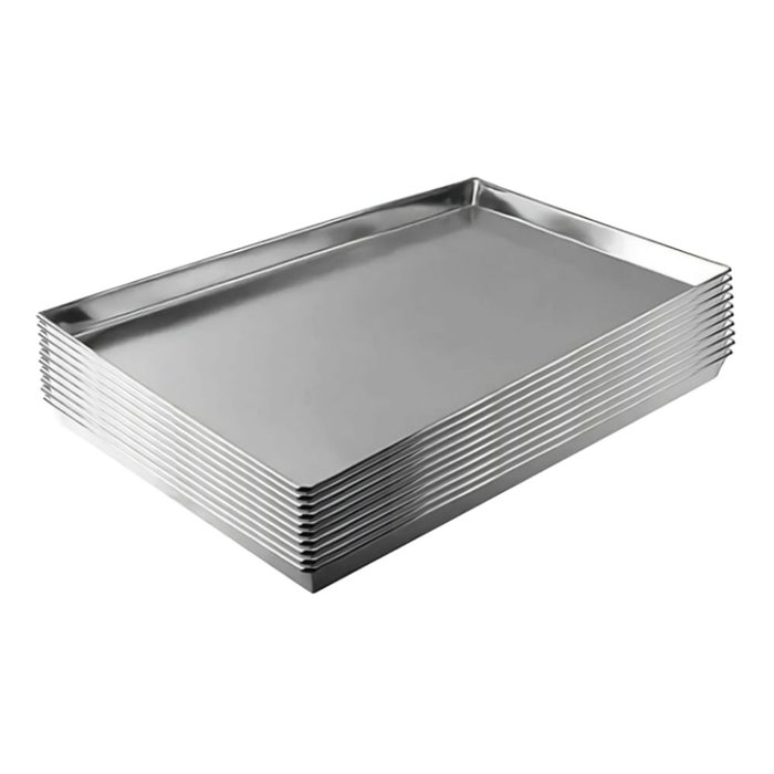 A assadeira dobrada com reforço de arame de aço carbono nas bordas é o parceiro perfeito para sua cozinha. Ideais para fazer pães, pães de queijo, pastéis assados, biscoitos, brioches, esfihas, croissants, entre outros. Com dimensões de 68cm de comprimento, 58cm de largura e 3cm de altura, e uma espessura de 0,6mm, esta assadeira de alumínio assegura uma distribuição uniforme de calor para pratos deliciosamente cozidos. Seu reforço de arame de aço carbono nas bordas garante durabilidade e resistência, tornando-a essencial para suas aventuras culinárias.