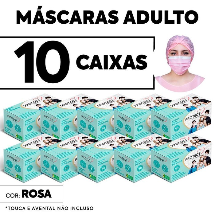 Kit com 10 caixas Mascara Descartavel Cirurgica Tripla Rosa c/50 Und cada 2336039