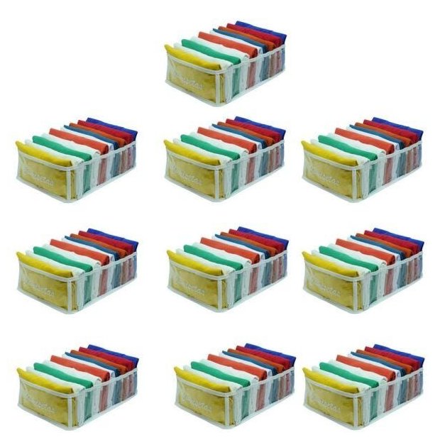 Kit com 10 organizadores de Camisetas. Acomoda camisetas de tamanhos P, M e G Possui 10 divisórias em cada colmeia. Ideal para organizar camisetas, podendo ser usada para o leggins, calças finas, calças de criança, blusas... Material: Plástico e viés em TNT Branco Medidas: 25Lx35Cx10A cm Fabricado por VB Home Cor: Transparente com viés branco, com silk escrito: Camisetas 3 meses de garantia para defeito de fabricação