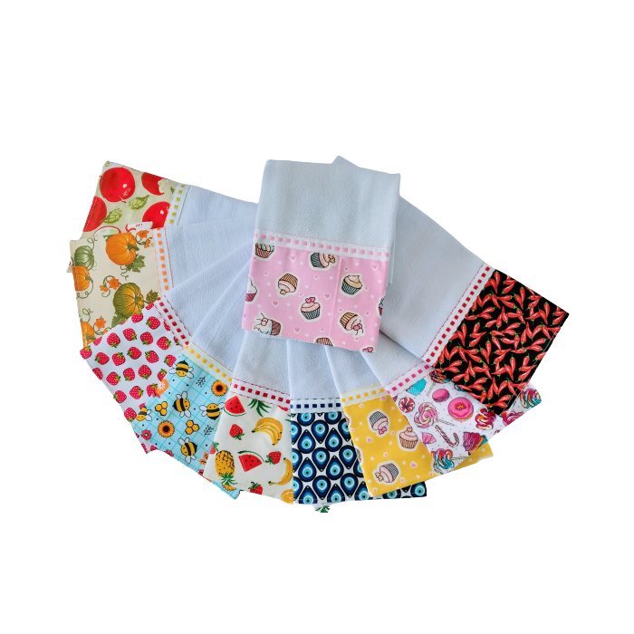 Kit com 10 Panos de Prato, Barrados e Fita Galão, Ppfátima (variação 1)