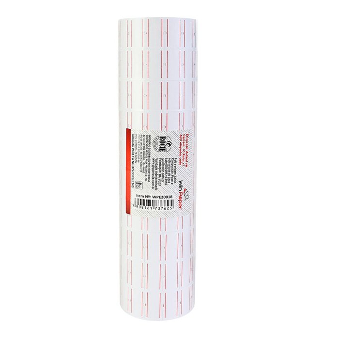 Com furinho para encaixe em etiquetadoras. Pode ser usado tanto em etiquetadora ou manual.