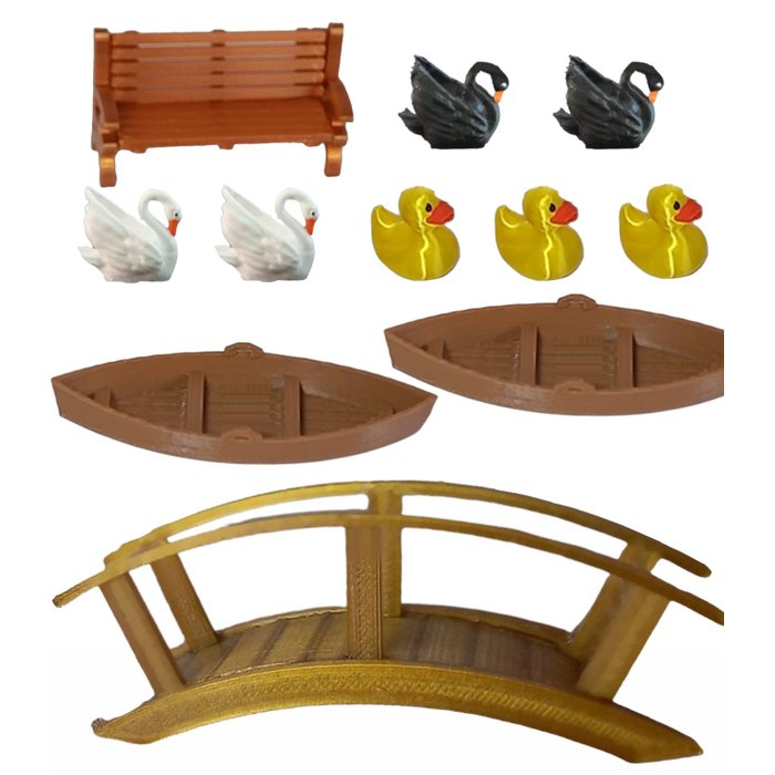 Atenção modelistas e amantes de terrários!Temos os produtos certos para complementar sua maquete ou dar um toque especial ao seu terrário. Nossos produtos são feitos em plástico ecologicamente correto.Não perca mais tempo e complete seu projeto com nossas miniaturas, que são feitas em plástico ecológico e finalizadas manualmente.- 1 miniatura de banco de praça- 1 miniatura de Ponte- 3 miniaturas de Patos- 2 miniaturas de Cisne Branco- 2 miniaturas de Cisne Preto- 2 miniaturas de BarcosPerfeitos para decorar seu terrário, seu mini mundo, seu mini jardim de suculentas e cactos ou sua casa de bonecasDeixe sua imaginação fluir na decoração com essas lindas miniaturasTamanho aproximado: 1.5C x 3L x 2A cm (bancos)Tamanho aproximado : 3C x 4A x 2.3L cm (casas)Tamanho aproximado : 2A cm (Patos)Tamanho aproximado : 2A cm (Cisne)Tamanho aproximado : 2,5A x 6L x 2,3C cm (Ponte)Tamanho aproximado : 5,5 Cx 2L cm (Barcos)O pacote inclui:- 1 banco de praça- 1 Ponte- 3 Patos- 2 Cisne Branco- 2 Cisne Preto- 2 BarcosRecomendamos alguns cuidados com a conservação:- As peças são ideais decoração de terrários e suculentas de meia luz, pois se forem expostas a altas temperatura ou diretamente ao sol por longo períodos, podem sofrer alterações.- Para fazer a limpeza das peças recomendamos pano úmido, não recomendamos serem lavadas com detergentes, ou produtos similares.Nota:1. A cor pode ser ligeiramente diferente devido à calibração de cores de cada monitor2. O tamanho descrito é aproximado.3- O produto esta no Brasil..Qualquer dúvida é só deixa-la no chat, vamos responder o mais breve possível
