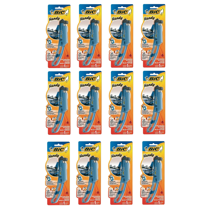 Kit com 12 Acendedor Isqueiro Fogão Forno Fogareiro Bic Handy Multiuso Recarregável