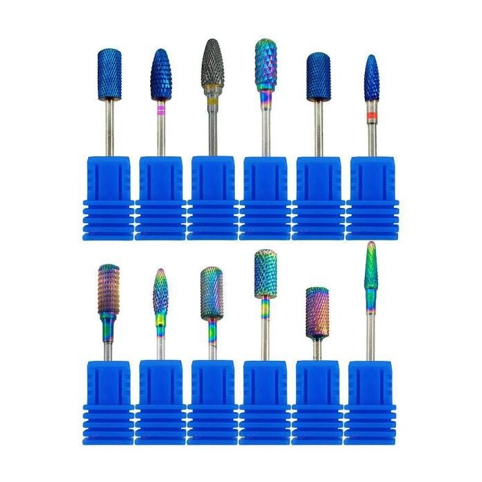Kit Com 12 Brocas Tungstênio Unhas Base Azul