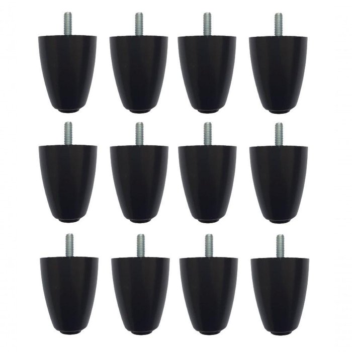 Kit com 12 Pés para Cama Box Baú P70 Rosca 5-16 Preto Preto