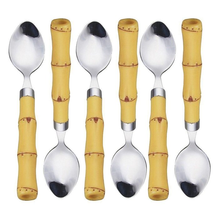 - 6 Colheres para Café de Aço Inox com Cabo de Plástico Bambu Natural 16cm