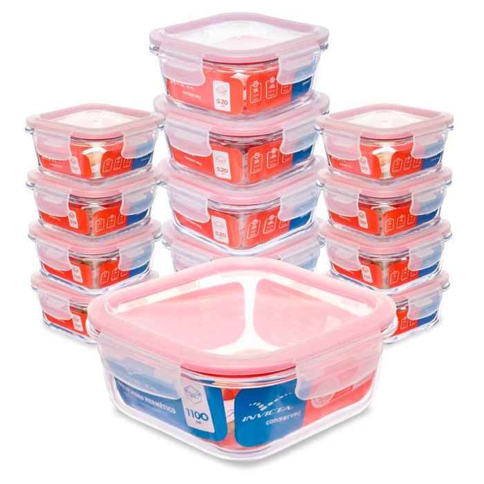 Kit com 14 Potes Herméticos Conserve Mais Invicta