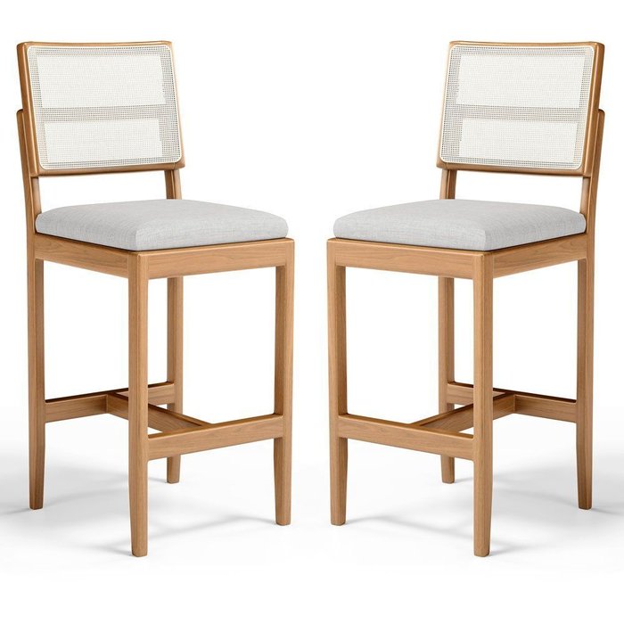Kit Com 2 Banqueta Milena Madeira Maciça Assento Estofado Encosto De Tela Sintética Linho Cinza 407 - Banquetas Banquinhos Em Madeira Maciça Encostos De Tela Sintética