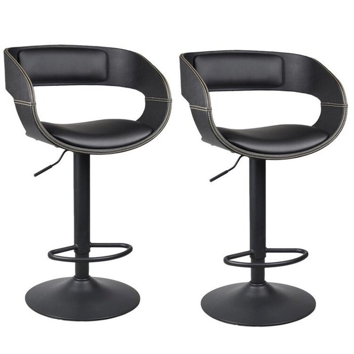 Kit com 2 Banquetas Alta com Encosto Base Disco Londrina Preto