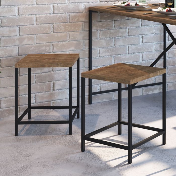 - Estilo Industrial: O kit é composto por duas banquetas que destacam o estilo industrial, perfeito para quem busca um visual contemporâneo e arrojado.